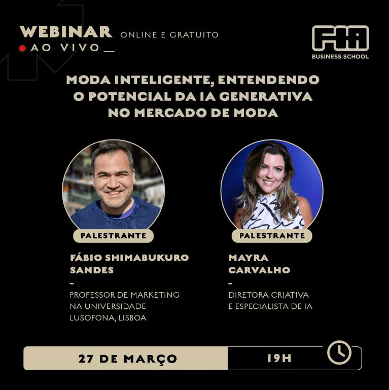 Conteúdo provocador, embasado e com repertório técnico para eventos, conferências e ações internas. Abordamos o papel da IA no design, moda, publicidade e branding com foco em identidade, sensibilidade humana e futuro da criação visual.