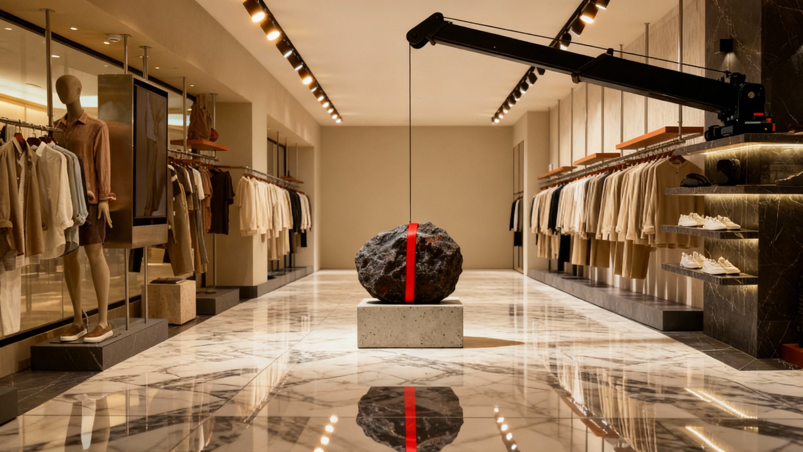 Da pedra bruta às fibras nobres, do algodão Pima à lã merino que ganha vida com o vento. Do peso do mineral à leveza do design. O tênis surge como protagonista e se reconstrói em um gift box — um rito de passagem entre matéria-prima e desejo.