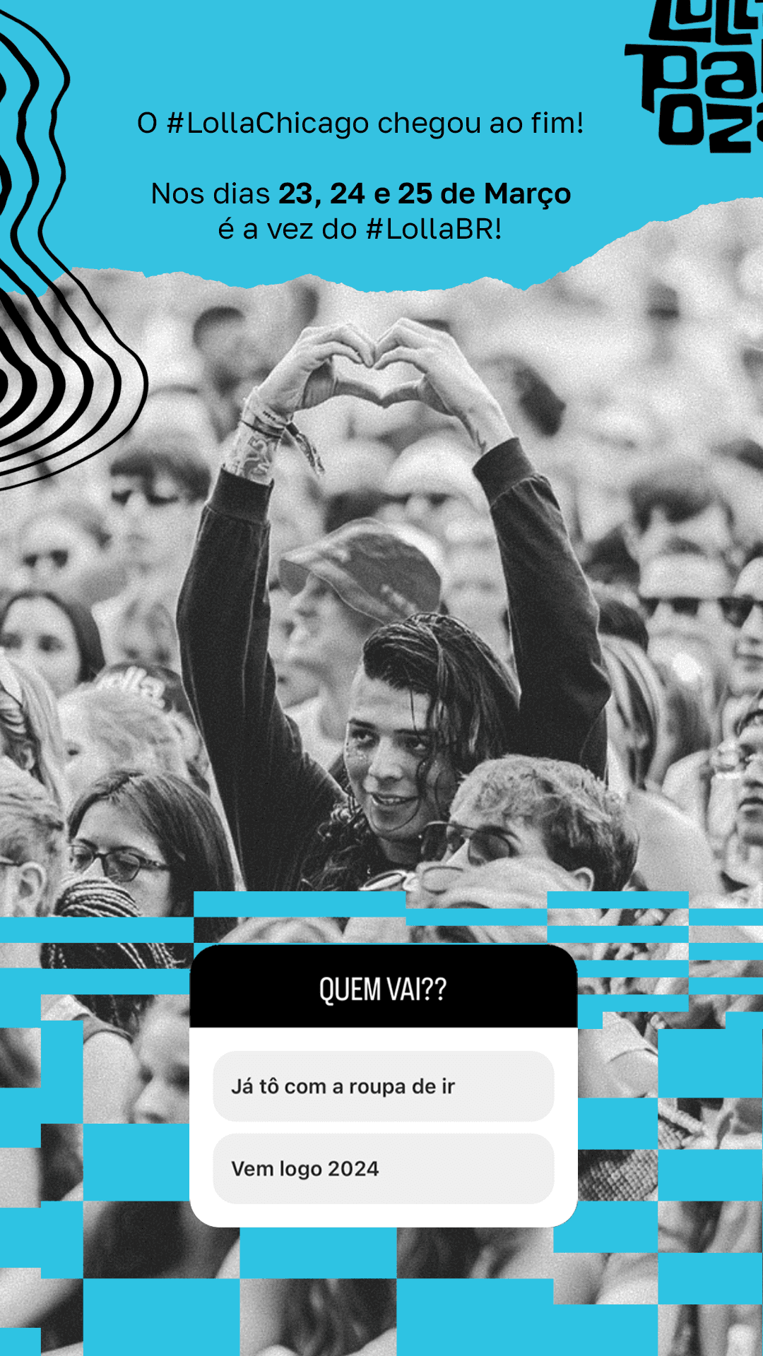 Tive a oportunidade de criar o key visual para a edição de 2024 do festival Lollapalooza, bem como o conceito visual para as redes sociais do Lolla. Adorei o resultado e ter feito todo esse trabalho!!